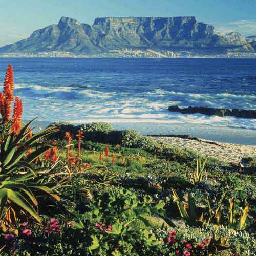 Depart for Cape Town with a photo stop at Bloubergstrand for the